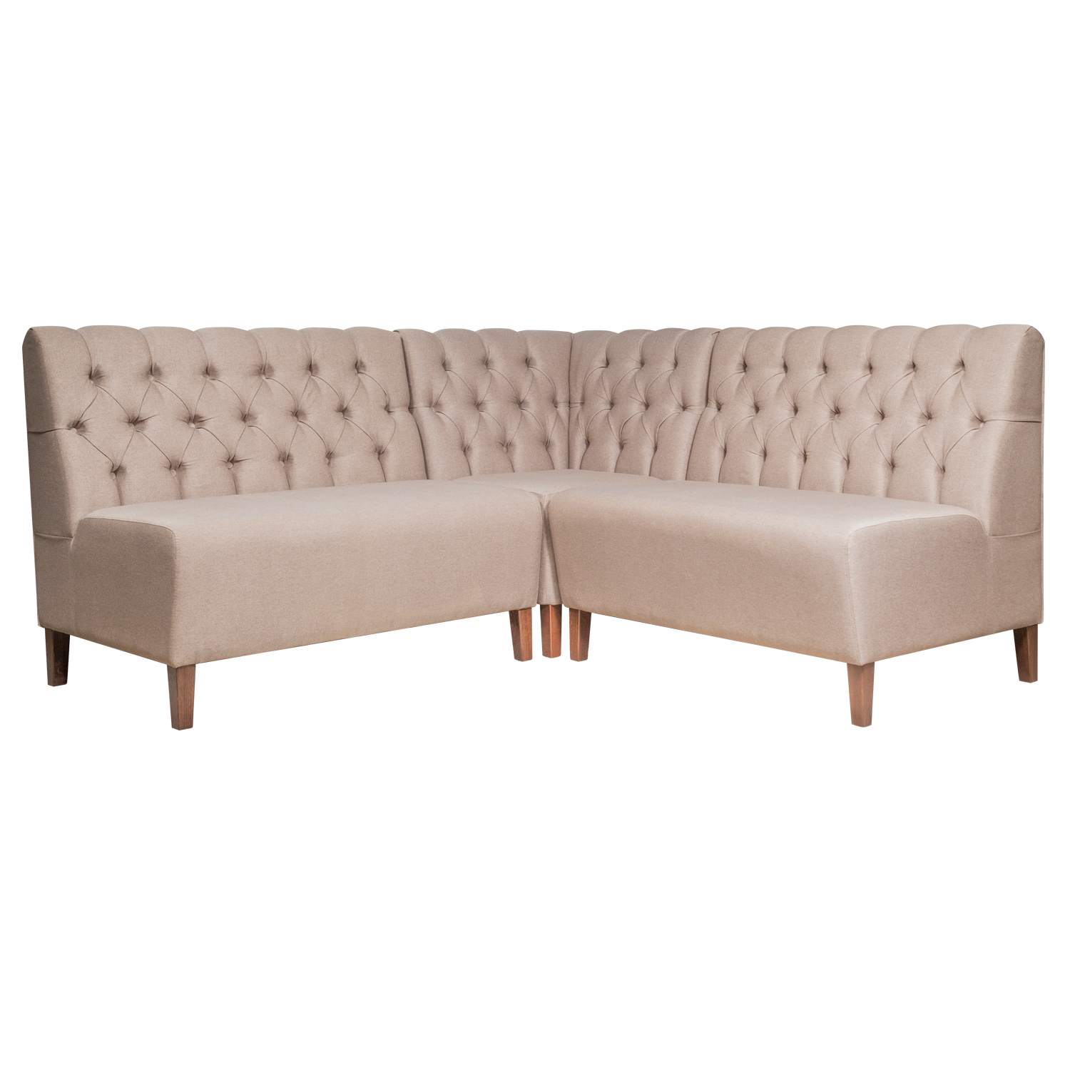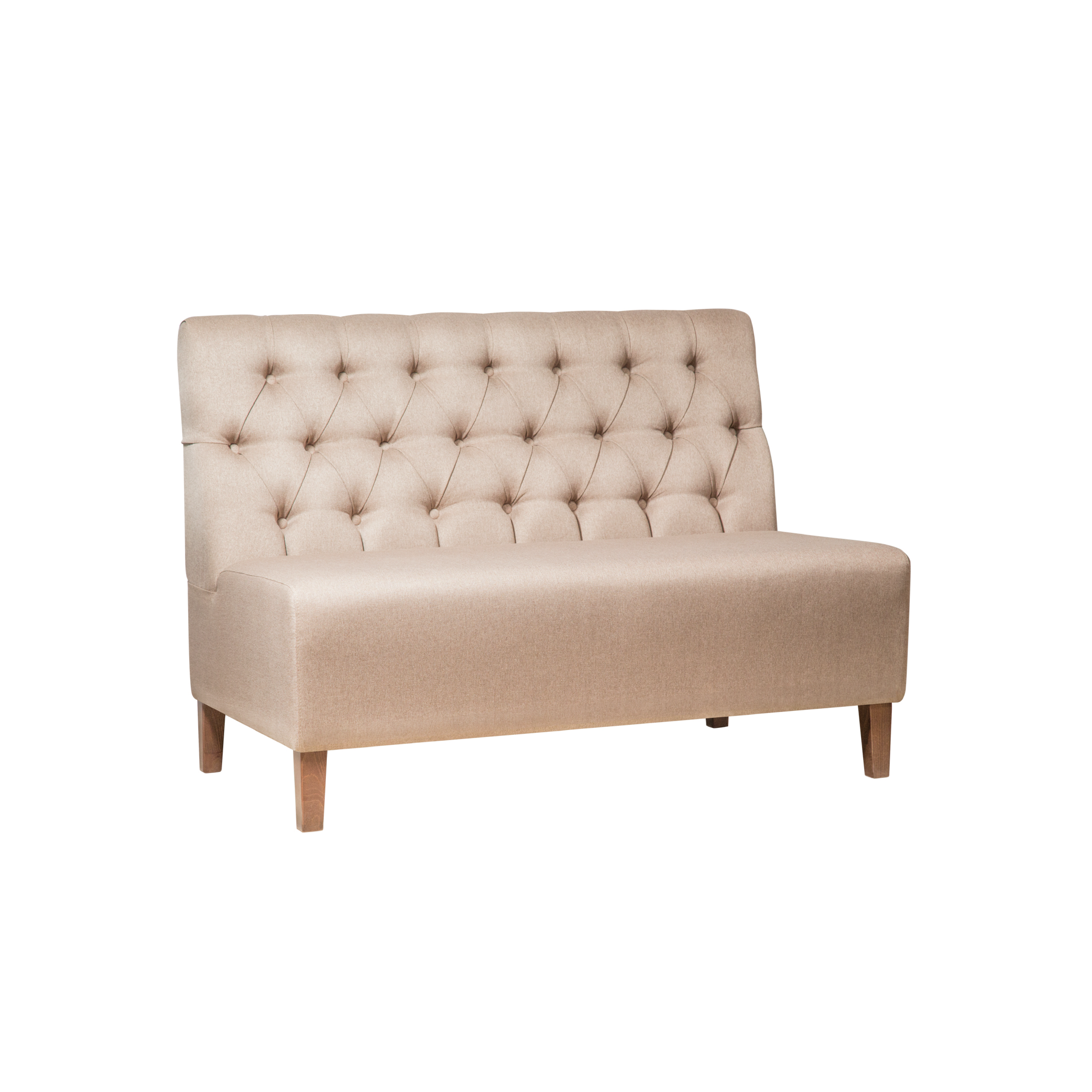 Прекрасный выбор для современных ресторанов, уютных отелей и атмосферных кафе. Декоративная простеганная спинка добавляет интерьеру утонченности, а модульная конструкция позволяет создавать различные конфигурации под любые пространства. Возможность изготовления в разных размерах делает этот диван универсальным выбором для любого заведения.