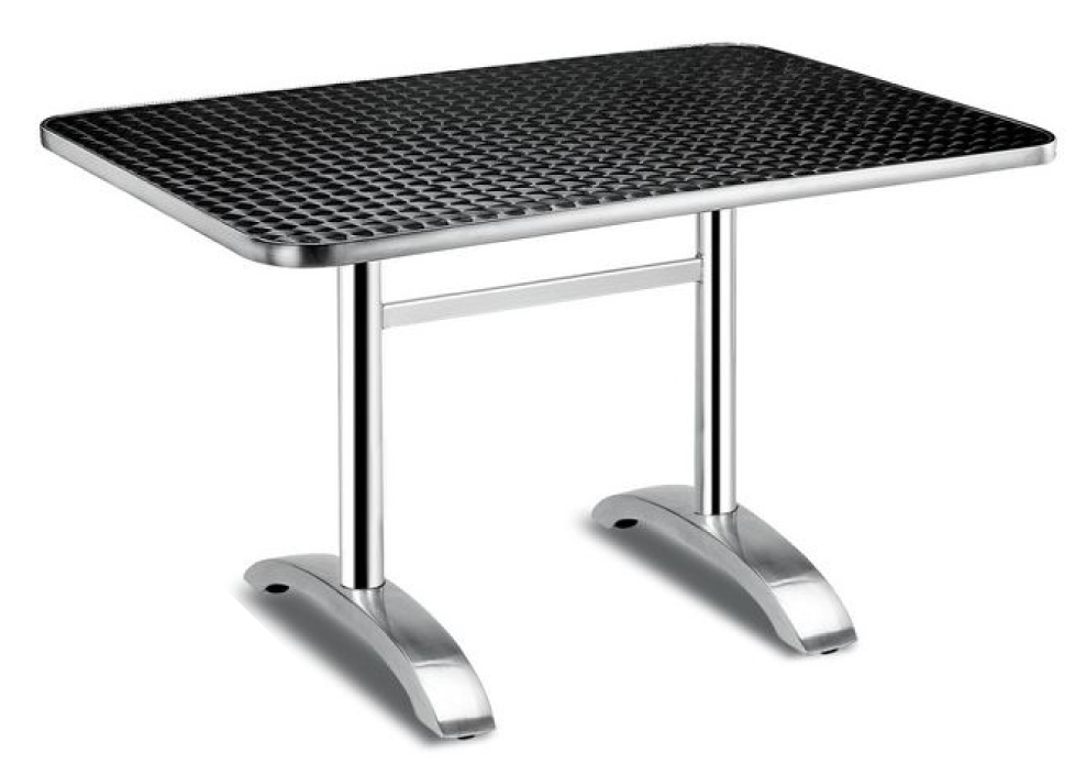 Прочная алюминиевая конструкция выдерживает интенсивные нагрузки, сохраняя устойчивость столешниц размером 120×80 см. Современный металлический дизайн органично впишется в любой интерьер.